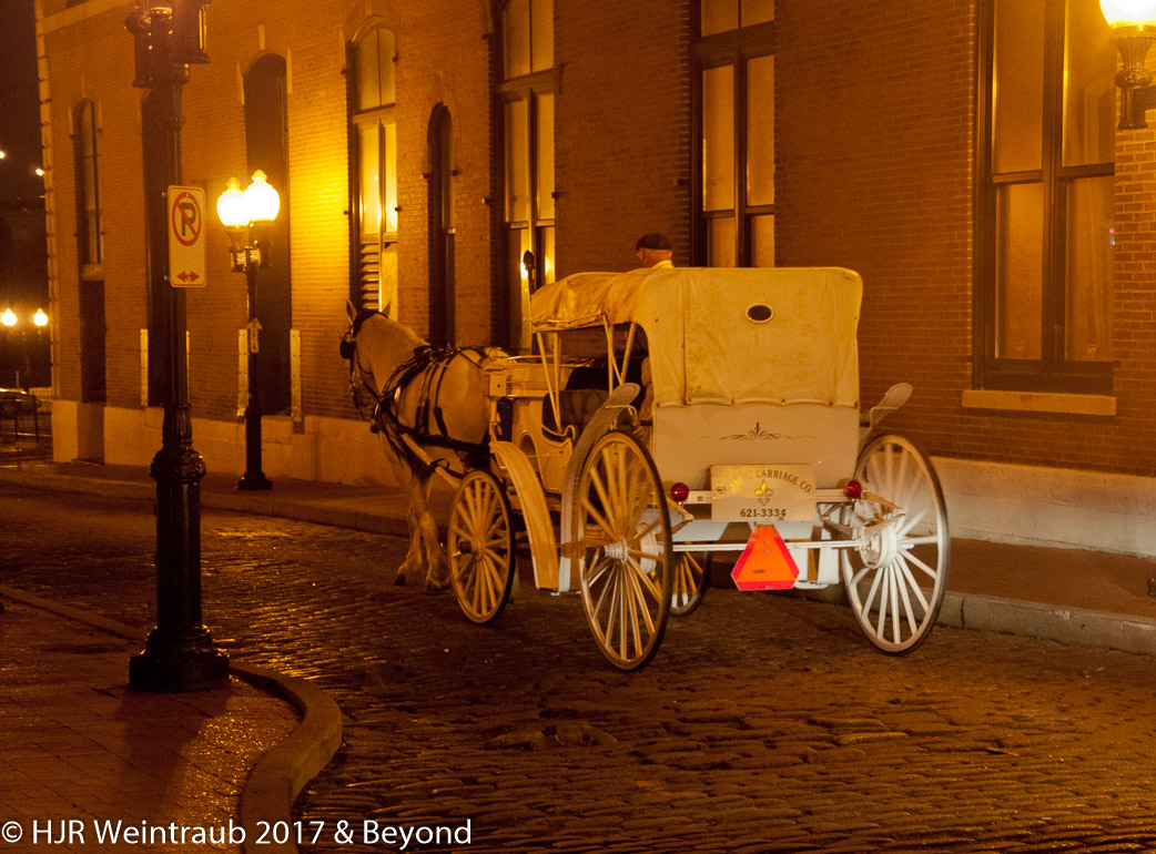 A carriage passes by at LaClede's Landing on the Mississippi RIver waterfront in St Louis